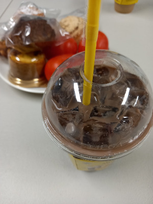 그렇게 해서 아이스 초코와 케이크 같은 빵을 먹게 되었다.