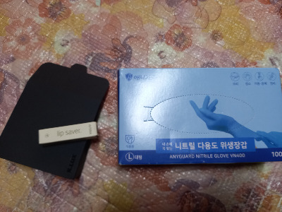그리고 다른 하나는 파란색 니트릴 장갑, 이건 5천 원 구매이용권으로 샀다.