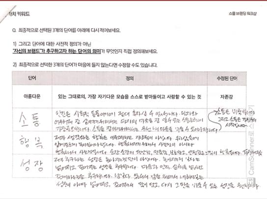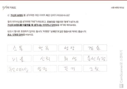 그렇게 소통, 행복, 성장이라는 가치 키워드를 정리할 수 있었습니다.