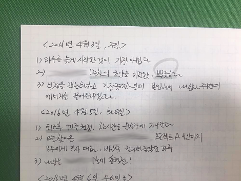 마지막 세 번째 줄은 내일의 짧은 각오를 쓴다.