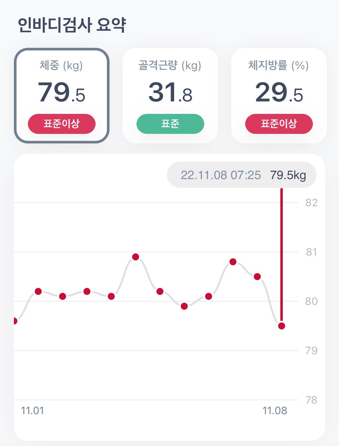 80키로 근처에서 치열하게 공방 중입니다. 확실히 먹으면서 빼는건 쉽지 않네요. 그래도 음식, 특히 폭식에 대한 내성은 상당히 기른 것 같습니다. 운동도 꾸준히 하고 있고요. 1차 목표인 75까지 열심히 달려보겠습니다. 격려와 응원, 조언 부탁드립니다^^