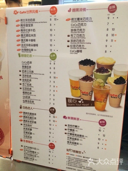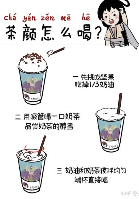 우선, 차옌웨써의 밀크티는 중국에서 대중적으로 판매되고 있는 밀크티(coco, 오른쪽 사진)와는 제조 방식이 다르다. COCO의 밀크티는 음료에 버블(펄)을 추가한 대만식 버블티라면, 차옌웨써의 밀크티는 버블 대신 휘핑크림을 얹는다.