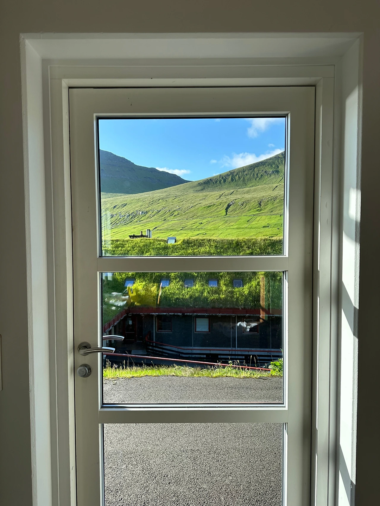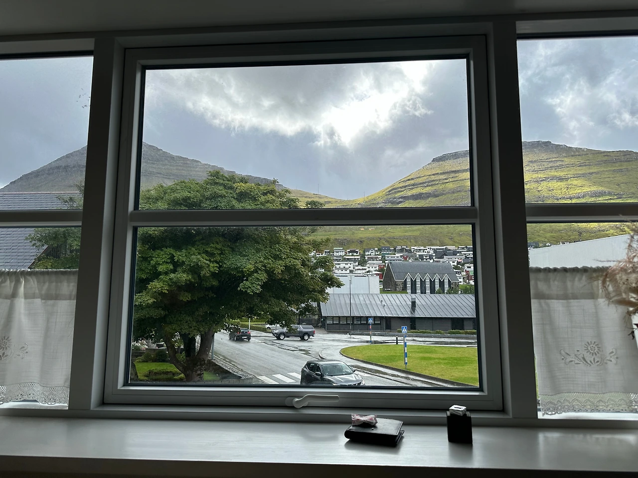 일단 공항에서 굉장히 가까워 걸어서 25~30분, 차로는 3~5분이면 도착해요. 페로는 공항에 출발 2시간 전에 도착해도 보안검사 구역 셔터가 내려가있을 정도로 공항이 작아서, 소르바구르에서 Out 하면 정말 여유롭게 공항에 가실 수 있어요. 렌트비를 아끼고 싶다면 하루 전날 차를 반납하고, 다음날 걸어가도 되는 거리고요. 미키네스행 페리는 9:15가 첫 시간이라 토르스하운에서 출발하면 선착장까지 아침에 40분~50분 내외를 운전해 체력적으로 부담이 되고 유료 터널비(100DKK, 약 2만 원)도 내야 하는데요.