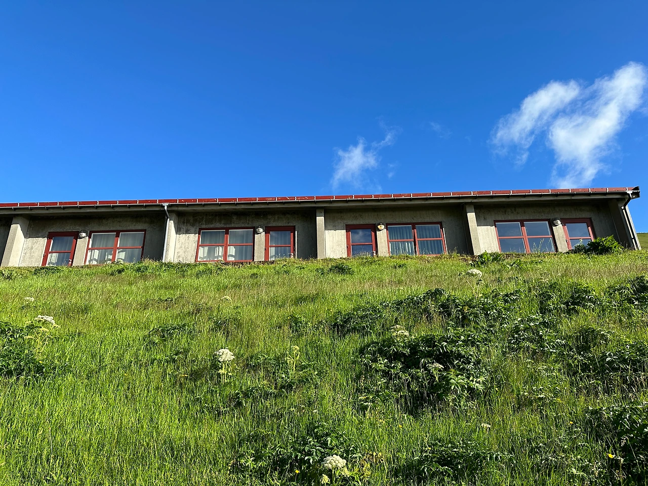 사실상 거의 유일한 호텔식 숙소라고 봐도 무방해요. 숙소가 두어 개 더 있긴 하지만, 방이 1개라 예약하기 쉽지 않고, 조식도 무료기도한데 유일한 식당도 이 숙소에 있어 여러 모로 여기 묵으시는 게 편해요. 호텔 형식의 본채와 별관 형식의 별채가 있는데 저는 별채를 추천드려요. 좋은 뷰의 방을 배정받으면 초록내음을 한껏 느낄 수 있거든요. 저녁은 식사 공간이 한정되어 예약을 해야 하며, 가격은 1인당 325DKK(약 6만 5천 원)으로 뷔페가 제공돼요.