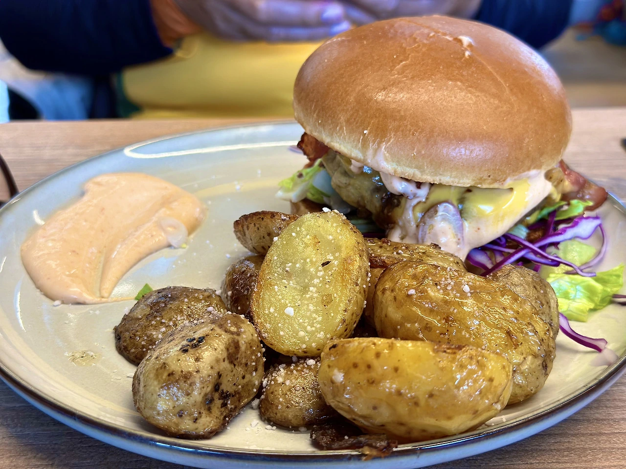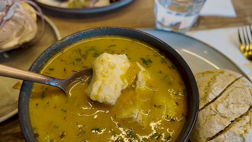 점심을 먹으러 클락스비크의 인포 센터에 위치한 식당 'Fríða Kaffihús'로 들어갔다. 작년에 왔을 때 있었던 알바가 있어 내심 반가웠다. 아빠는 햄버거, 나는 생선 수프와 양고기 소시지빵을 시켰다. 생선수프는 대구가 크게 두 덩이 반 정도 들어가 있었는데 대구가 정말 쫄깃하고 맛있었다. 나는 당근을 싫어하지만, 당근들이 채 썰려 들어가 있었는데 크게 신경 쓰이지 않았고, 국물에선 깊은 맛이 났다.