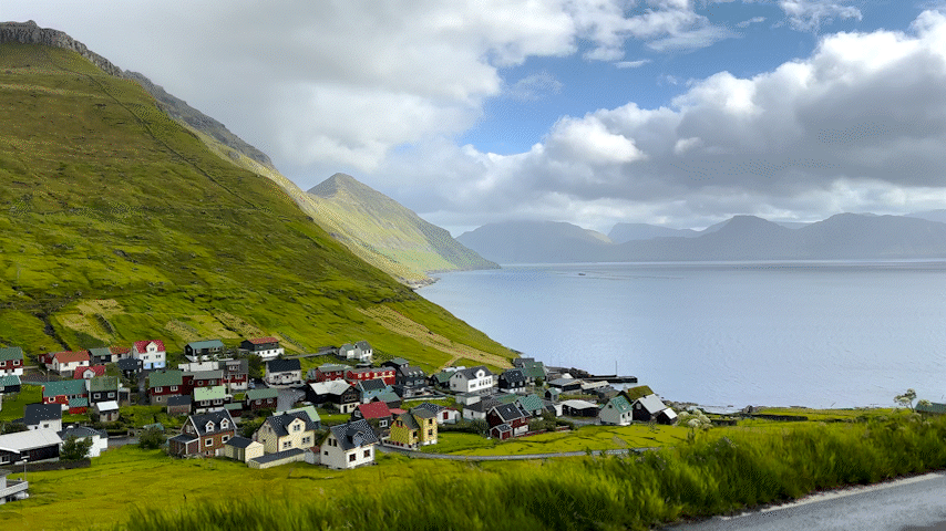 [숙소] Gjogv 체크아웃 > [뷰포인트] 후닝구르(Funningur) > [트레킹] Klakkur > [점심] Firoa Kaffihus > Gjogv > [마트] Bonus > 숙소 체크인 > 동네 산책