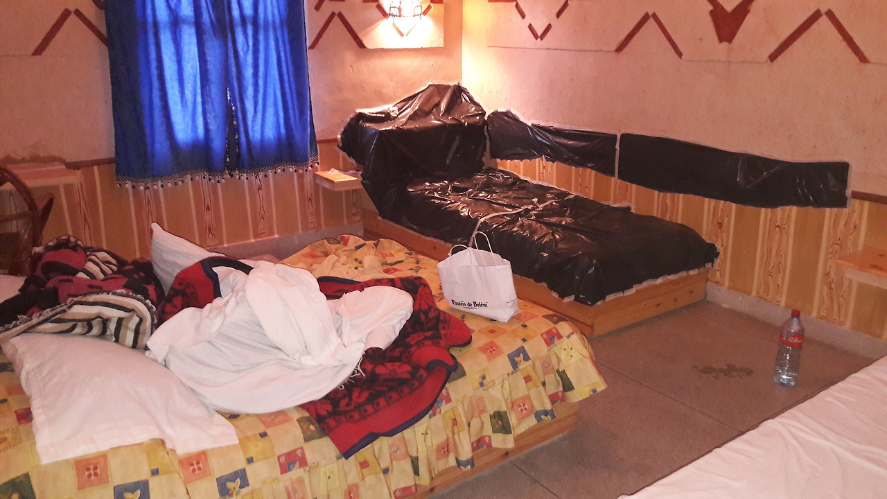 이미 주인 내외는 깊은 잠에 빠진 상태였고, 남는 방도 없었으며 사막이라는 열악한 인프라를 자랑하듯 밖에는 주먹만 한 벌레들이 우글우글 돌아다녔다. 결국 잠을 안 잘 수는 없으니 특단의 조치를 취하기로 한다. 내가 언젠간 이럴 줄 알고, 잔뜩 준비한 게 있지. 외국에서 사용하는 종량제 봉투와 비슷한 개념의 Bin Bag(or Plastic Bag)이 있는데, 빈대에 한번 호되게 당한 후로는 이걸 꼭 사서 종이테이프와 함께 배낭에 챙겨뒀다. 혹시 빈대를 발견한다면 나의 커다란 80L 배낭으로 숨지 못하게 재빨리 봉투로 싸매기 위해서. 10개 들이 묶음 중 첫 번째 봉투에 배낭을 집어넣고 단단히 동여맨다. 이후 가히 내부 인테리어(?)라 불릴 만한 작업이 진행됐는데, 3개의 침대 중 가장 빈대가 접근하기 힘들며 덜 붐비는 지역으로 예상되는 침대의 탐색을 마쳤다. 남은 9개의 봉지를 꺼내, 빈대가 올만한 곳을 전부 막기 시작했다. 빈대는 미끄러운 곳은 오지 않는다. (후에 안 사실이지만, 침대에 올라갈 수 없으면 천정으로 기어 올라가 침대 위로 떨어진다는 어마 무시한 이야기도 있었다.) 그 결과...
