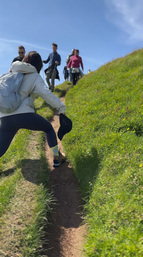 이런 언덕을 걸어 올라가야 해요. 길이 잘 닦여있고 양 똥이 없어 걷기 편하지만, 그래도 경사가 좀 있는 편이니 미끄러움에 주의하세요.