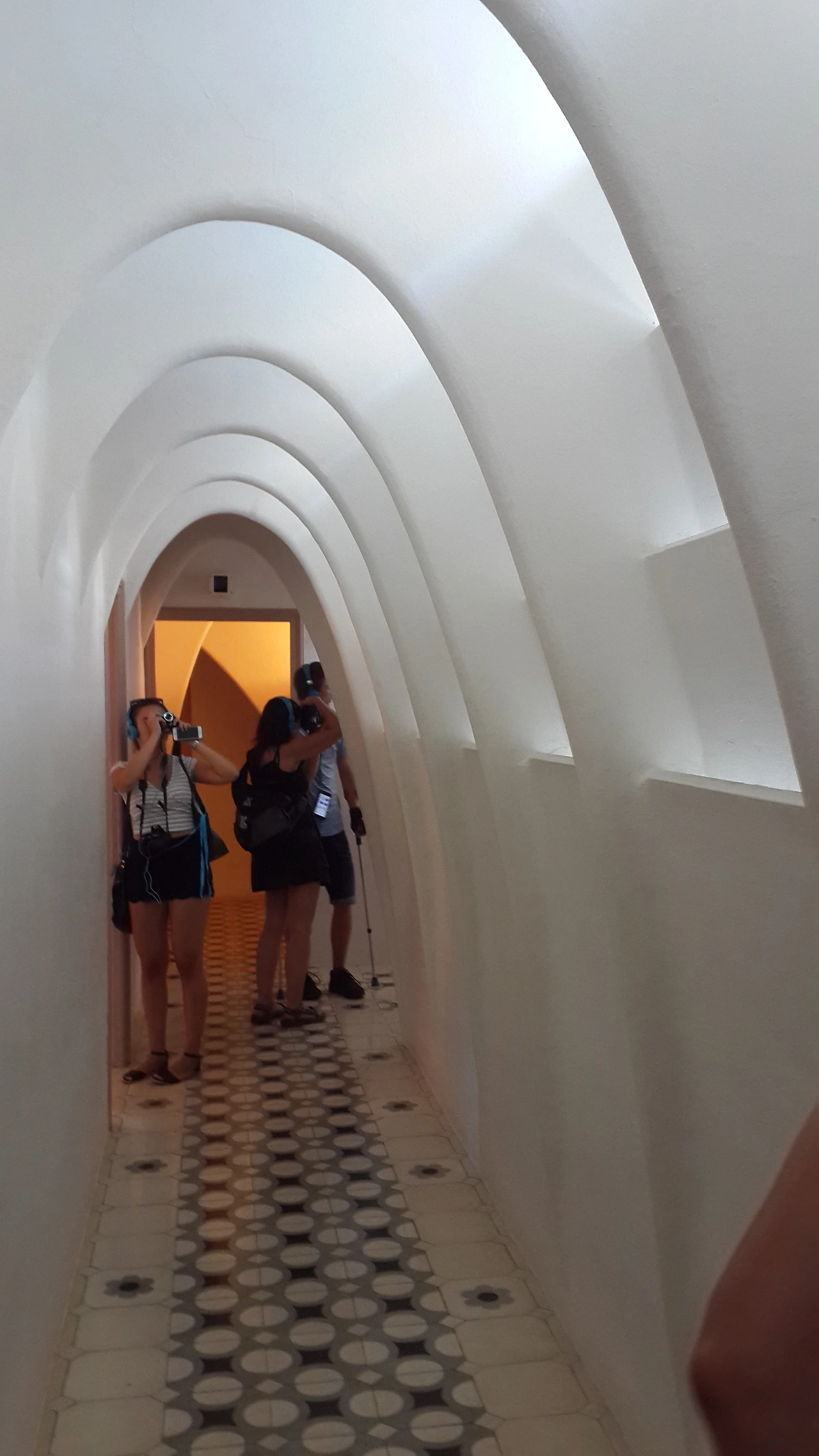 이러한 주거로써의 기초적 공간에도 가우디는 심미적인 요소를 빠트리지 않았다. 복도와 다락의 천장을 지지하고 있던 것은 타원을 그리고 있던 아치였다. 13개의 아치는 일정 간격으로 높이를 달리하며 반복되고 있었는데, 마치 어떤 생명체의 갈비뼈 같았다. 그래서일까, 마치 이 건물을 들어올 때 느꼈던 기이한 생명체, 그 녀석의 뱃속을 걷는 느낌이었다. 괜한 느낌은 아니었다. 결국 이 아치가 용을 상징하는 이 건물의 지붕을 만들어 주고 있기 때문이다.