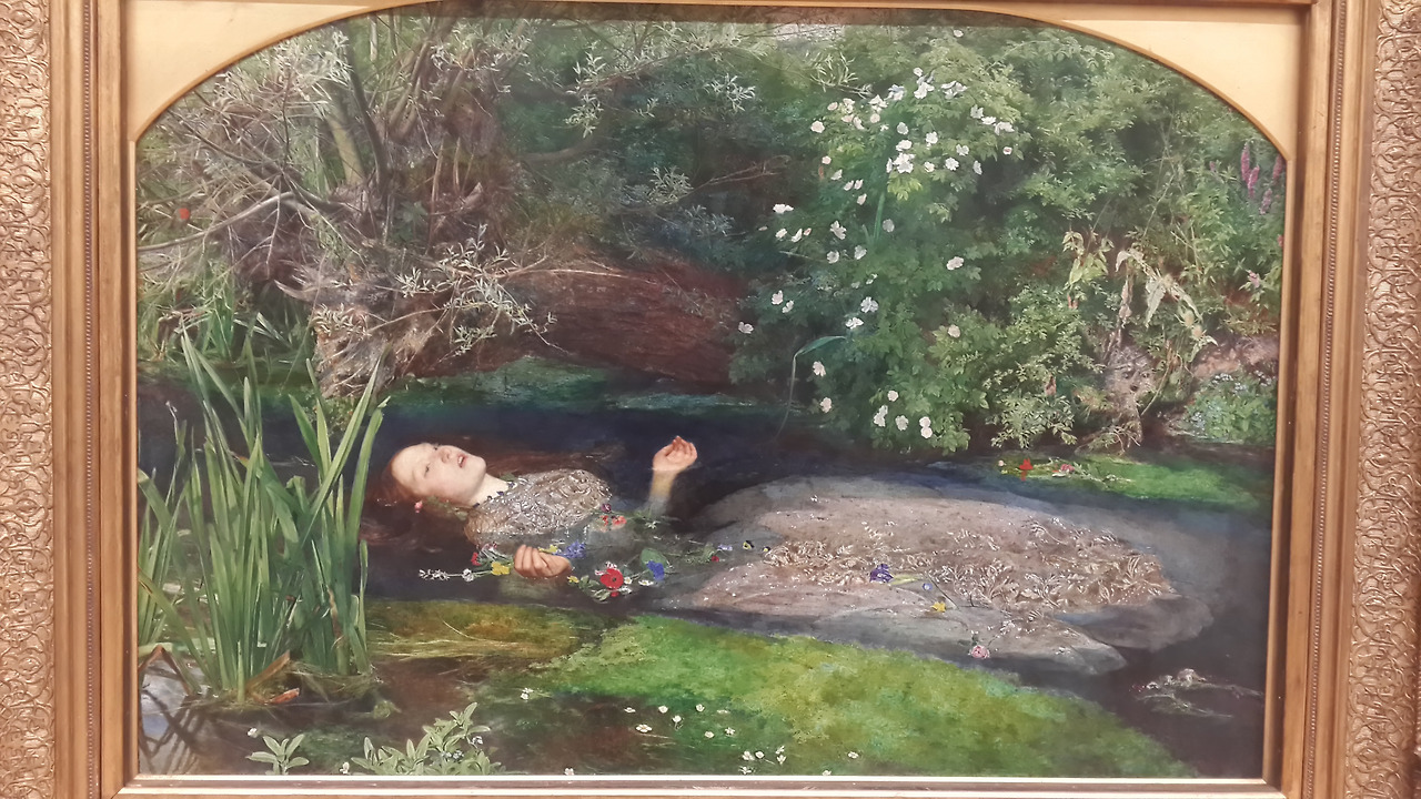 본능적으로 생각난 그림이 있었습니다. 그것은 몇 년 전 런던 테이트 브리튼에서 본 <오필리아>입니다. 그림 앞에서 한동안 넋을 잃고 시간을 보냈던 기억이 납니다. 정신을 놓고 죽어가는 그림 속 여인의 비극이 너무나도 생생하게 전해졌기 때문이었습니다. 그녀의 죽음이 박제처럼 벽에 걸려 있는 모습이 왠지 처연하기까지 했습니다.