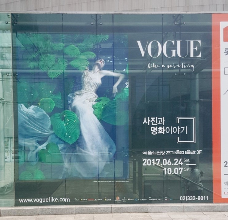 그렇게 찾게 된 전시회가 '보그 라이크 어 페인팅' (이하 <보그 전>)이었습니다. 물론 패션에 무지한 저로써는 '보그' 보다는 '페인팅'에 눈길을 둘 수밖에 없지만요. 하지만, 내 눈을 사로잡은 것은 다름 아닌 전시회 포스터였습니다. 물 위의 여인. 수련의 초록과 그녀가 입고 있는 드레스의 하얀색이 강렬한 대비를 이루고 있던 사진이었습니다.