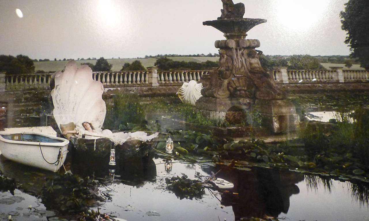 가령 이 사진처럼 말이죠. 이 사진은 테이트 브리튼에 전시된 또 다른 명화를 오마쥬한 사진입니다. 바로 존 윌리암 터너하우스의 <샬럿의 처녀>라는 그림을요. 13세기 영국의 전설인 아서 왕 이야기를 다룬 원작답게 가장 영국적인 느낌으로 재해석되었습니다.