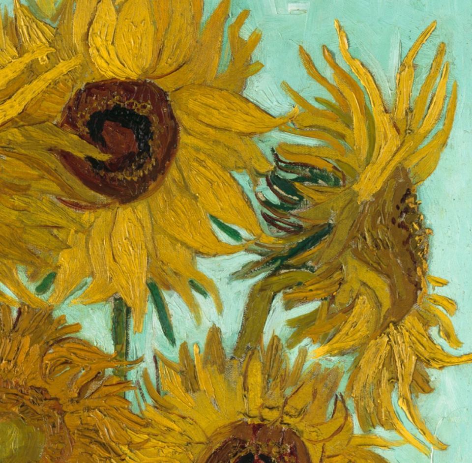 고흐는 자신에게 오랫동안 영감을 주던 꽃인 해바라기를 참 많이 그렸다. 그 시작은 고갱과 같이 지내게 될 방을 장식하기 위해서였다. 고흐는 매일 아침 눈을 뜨자마자 부지런히 그렸다. 파리 어느 레스토랑에 장식된 커다란 해바라기를 기억하면서. 해바라기 꽃은 빨리 시들기 때문에 가능한 단번에 전체를 그려 내렸다. 완성되었을 때 보게 될 파란색과 노란색의 조화로움을 상상하면서.