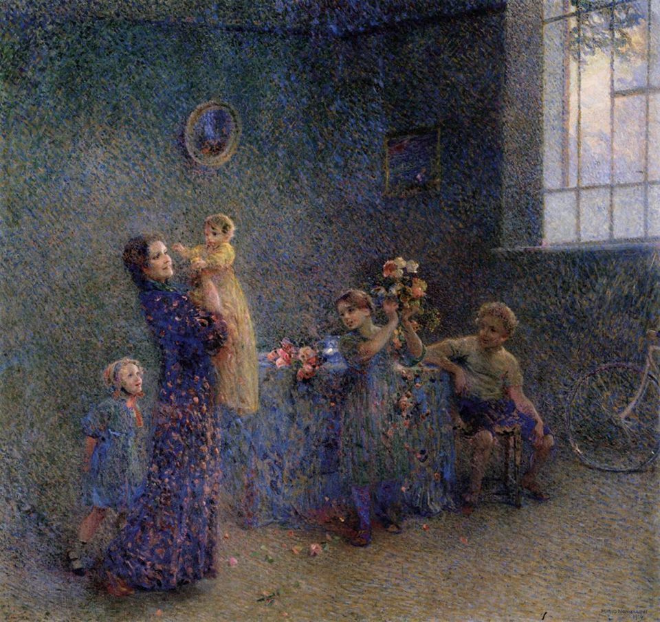 이 그림은 우리에게 그다지 잘 알려지지 않은 이탈리아의 화가, 플리니오 노멜리니(Plinio Nomellini)가 그린 <첫 생일>이라는 작품이다. 신인상주의 화가답게 화폭에서 빛을 표현하는 방식이 참 독특하다. 빛이 다양한 색 입자로 분해되어 공기 중에 흩날리는 듯한 느낌이랄까. 덕분에 그림이 주는 분위기는 한층 부드럽고 신비감마저 든다. 플리니오는 젊은 시절에 노동자의 파업이나 정치적인 소재로 그림을 그리곤 했지만, 말년에는 이렇듯 서정적인 풍경화나 온화한 가족의 모습을 화폭에 담았다고 한다. 세월이 그의 마음을 따듯하게 품어준 것이다.