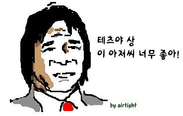 다케다 테츠야 아저씨. 이 우락부락한 아저씨를 처음 본순간. 아저씨의 외모에 압도(?)되어서 드라마의 재미를 위해서라지만 해도 너무한다는 생각이 안들 수가 없었다. (위 그림도 그리다보니 상당히 미화된 것이다. ㅋㅋ) 하지만, 드라마상의 인물 그리고 이 '테츠야'상이라는 배우를 조금 알게되면 누구라도 좋아할 남자임에 틀림없다. 인간적인 매력을 느끼게 하는 사람이며 또한 보기와 다르게(?) 학식있는 사람이다. 실제로 테츠야상은 일본에서 배우이외에 작가로도 이름을 쌓은 명망높은 사람이다.