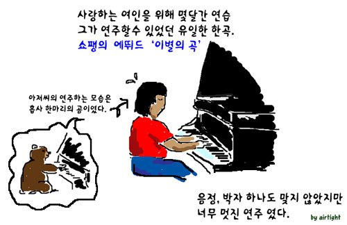 "이건 쇼팽의 101번째 프로포즈 OST 삽입된 쇼팽의 '이별의 곡', 안타깝게 테츠야 아저씨가 연주하는 장면은 없네. 그게 제대론데."