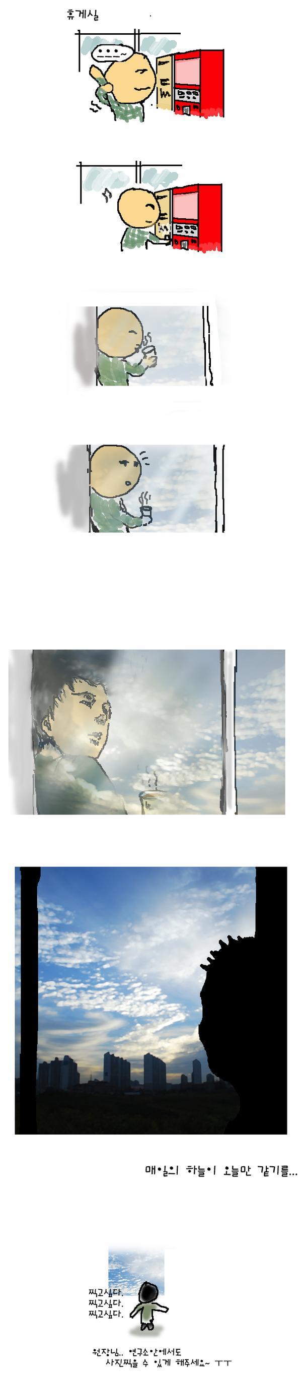 "그래, 넌 가을이면 하늘을 보며 위안을 삼곤 했지. 회사에서 보안상의 이유로 하늘 사진을 찍을 수 없어, 출근 전에 하늘 사진 찍던 네 모습 기억해. 그래도 걱정 마, 10년 뒤엔 너도 마음껏 하늘 사진을 찍을 수 있는 곳으로 가게 될 테니"