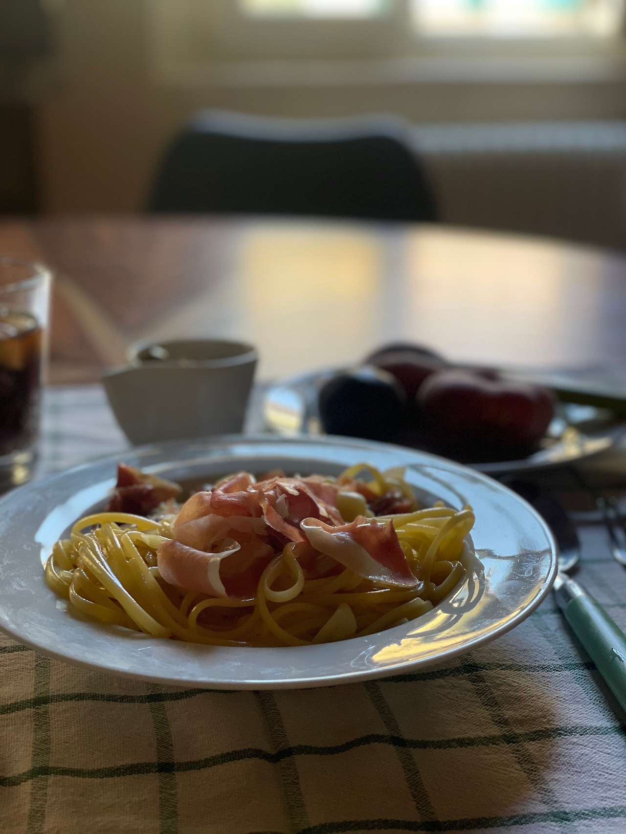 여행 전에 회사일에 이리저리 치여 지쳐서 왔던 내게 한낮의 무더위를 피하는 것은 힐링의 시간이었다. 콜바넴 속 올리버가 그러했듯, 오전에 부지런히 돌아다니고 한낮엔 더위를 피해 시원하게 보내다가 저녁엔 또 돌아다니는 그런 '여름 손님'의 삶을 즐겼다. 점심 전후부터 늦은 오후까지 숙소에 에어컨을 시원하게 틀어놓고, 역 근처 마트에서 사 온 재료들로 파스타, 샐러드를 해 먹고 후식으로 유럽에만 있다는 납작 복숭아도 배불리 먹었다. 그렇게 먹고 나서는 에어컨 아래서 찍은 사진을 보거나 다음 여행할 걸 좀 알아보다가 졸리면 낮잠도 자고. 그러다가 오후 5시쯤 되면 슬금슬금 몸을 움직여 크레마 시내 골목골목을 돌아다녔다. 노을이 지면 숙소로 들어와 느지막이 숙소에서 저녁을 해 먹었다. 여행 와서 늘 밖을 부지런히 다녔던 사람이라, 숙소에서 쉬고 있는 게 '유죄' 같은 기분이었지만, 불가피한 상황이니 꽤 '합법적'으로 죄를 짓는 기분이었다.