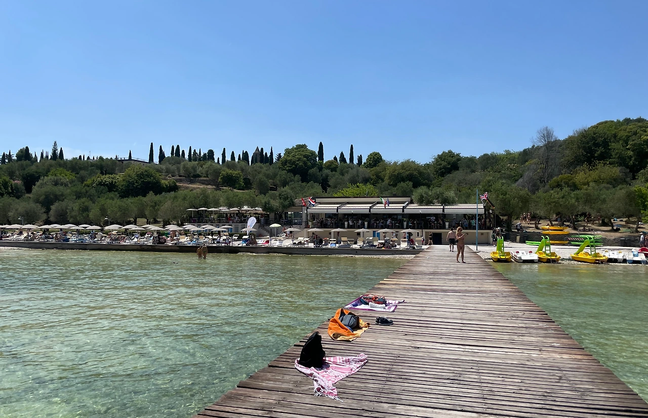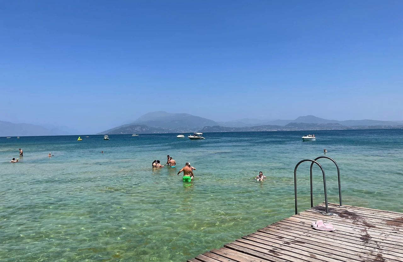 이 여행의 시작이 영화 <콜미 바이 유어 네임>이었으므로, 영화 촬영지였던 시르미오네 유적지(Archaeological site of Grotte di Catullo)와 자메이카 해변을 가고 싶었으나, 유적지는 내가 방문한 날 휴무였고(월요일 휴무) 자메이카 해변까지 들렀다 오기엔 시간이 촉박하여 Spiaggia Lido delle Bionde라는 (해변이라기엔 호수니 호수변이 맞을 거 같지만) 해변에서 수영을 하기로 했다.