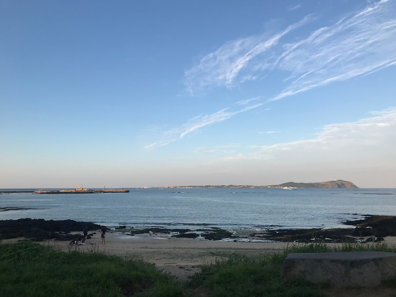 대회가 끝나고 그날 저녁 아무리 스트레칭을 몇 번 해도 다리가 사라진 것 마냥 아팠다. 밤늦게 돼서는 걷기도 힘들었었다. 타이레놀을 먹고 밤새 식은땀을 흘리고 잤지만, 다음날 저녁에 나는 다시 자전거를 끌고 내가 달렸던 해안도로로 나갔다. 전날엔 앞만 보고 달렸지만, 이번엔 멋진 풍경이 나오면 멈춰서 사진도 찍고 천천히 타며 바당(제주말로 '바다') 구경도 할 수 있었다. 오조리 포구에 들려 멋진 노을도 감상할 수 있었다.
