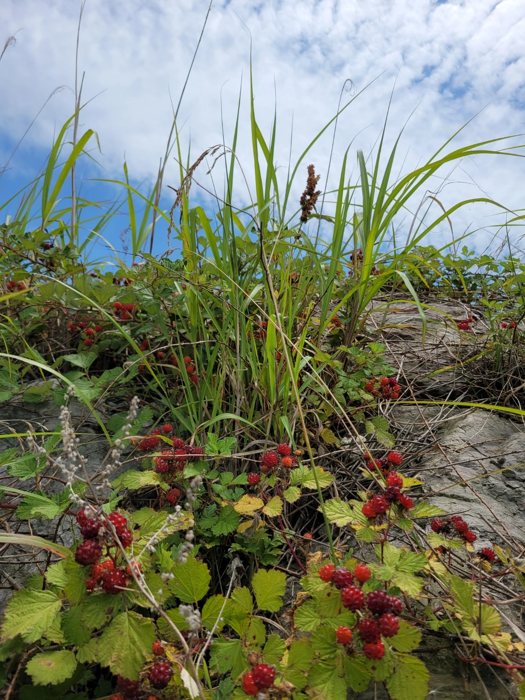 그런데 이번 산딸기는 지난번 산딸기와 달리 따자 마자 알알이 흩어져 버린다. 한입 먹어보니 딸기 씨앗이 더 많이 씹혔다. 지난번 흰곰 산딸기의 맛을 본 언니와 나는 이번 딸기는 색을 더 붉지만 식감이 별로라는 것을 단번에 눈치챘고 아직 산딸기 맛을 못 본 언니는 그것도 신기해했다.