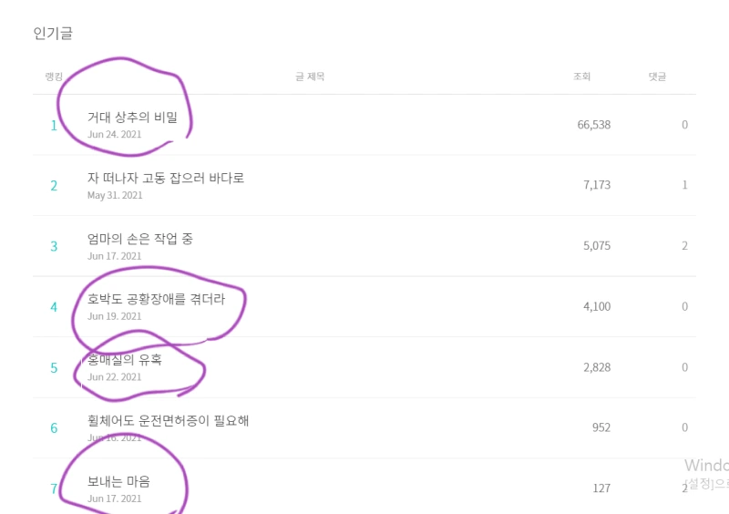 시기에 맞는 내용이 검색도 되고 조회수도 올라가는 것 같다. 현재 이슈가 되고 있는 내용과는 상관없는 글들은 언제나 묻히게 마련이다.