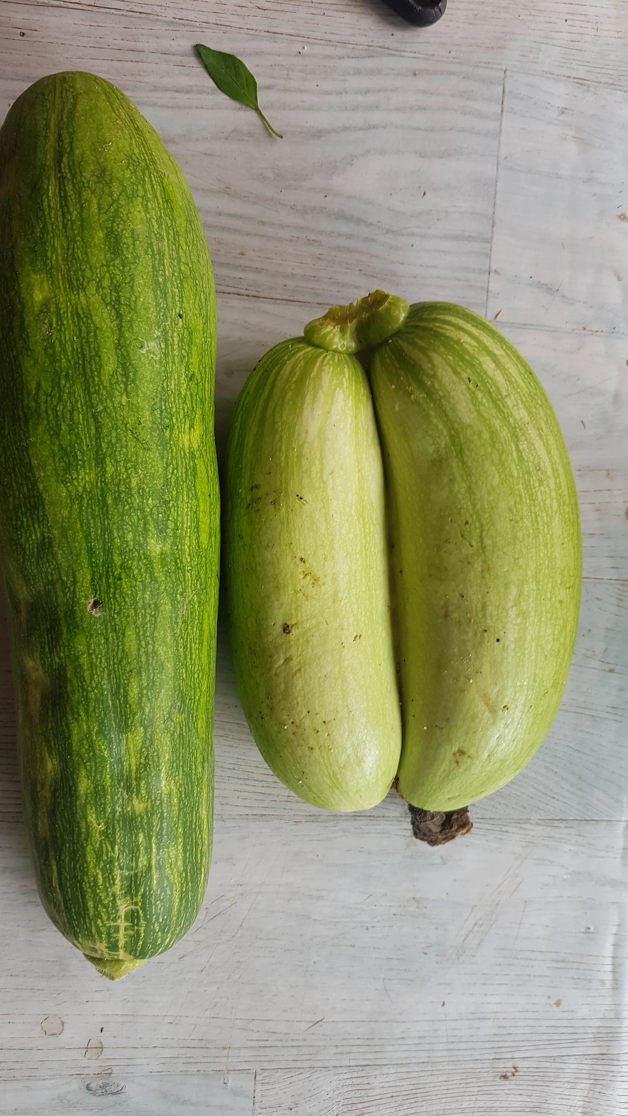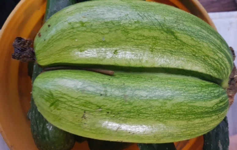 애호박은 여기서 그치지 않았다. 잎을 살짝 들쳐보자 그곳에 자리 잡고 있는 애호박을 보고 소스라치게 놀랐다. 바로 샴쌍둥이 애호박이 자라고 있었다. 머리가 두 개 몸통이 두 개 그런데 둘 다 꼭 붙어서 자라고 있었다. 한 개의 생명체가 아닌 두 개의 생명체였다. 생전 처음 보는 돌연변이 호박이었다. 호박을 따면서 이거 따도 되나 하는 섬뜩한 기분마저 들었다.