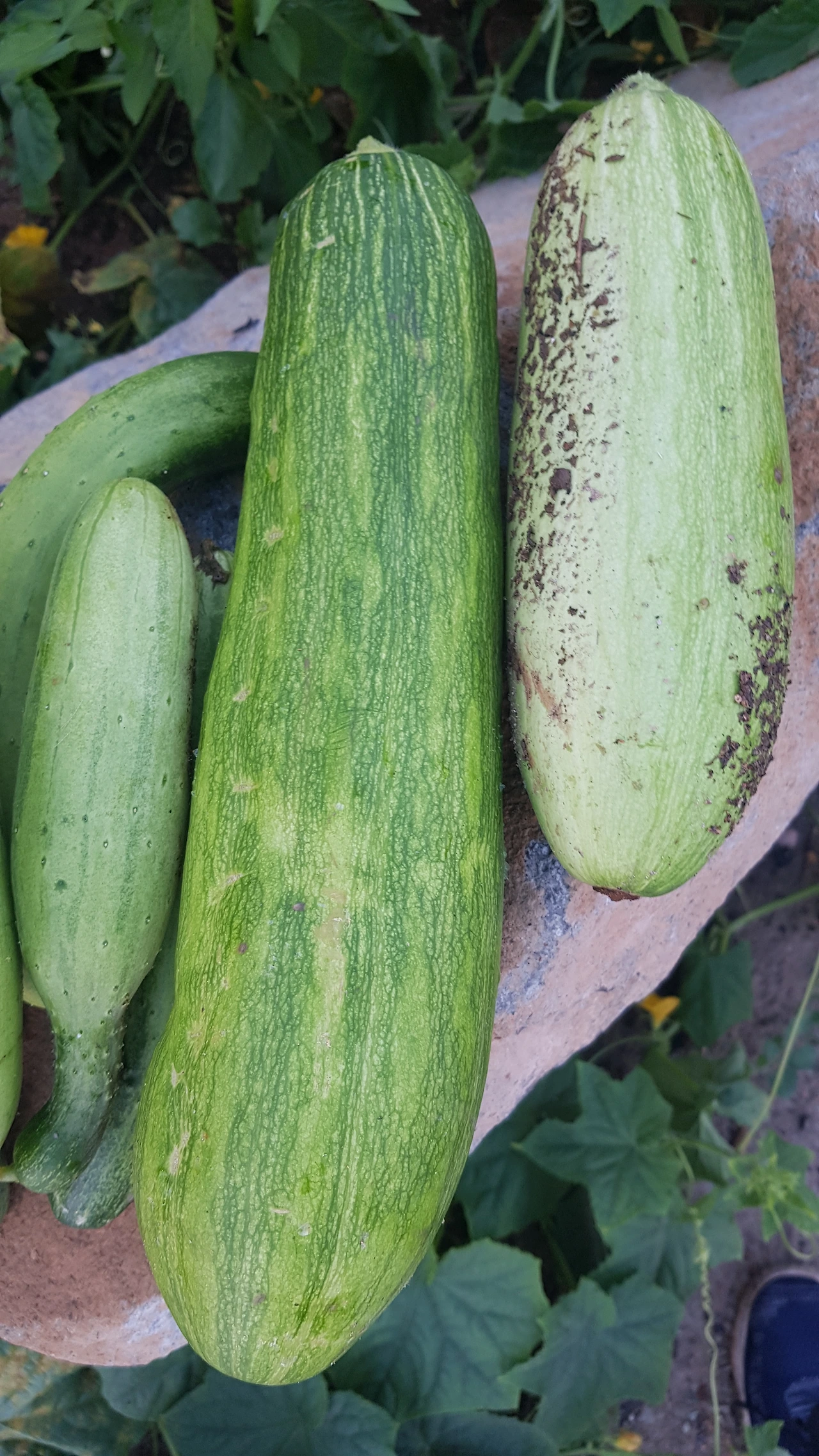 그것보다 더 기괴한 것은 오이 대와 연결된 머리 쪽은 작고 몸통 쪽으로 비대하게 자라 있다는 것이다. 텃밭 집사가 집을 비운 사이 영양분을 몸 전체로 골고루 분사시켜 주시 못해 기형아 모습이 되고 만 것이다. 오이를 따면서 물을 주지 못한 죄인이라 오이에게 너무 미안한 마음이 들 정도였다.
