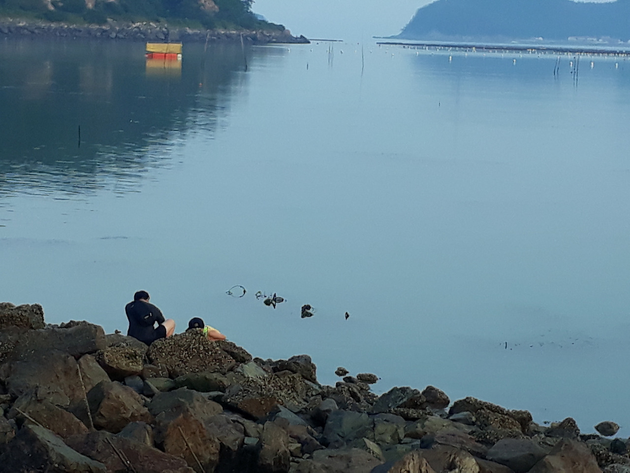 아이들은 고동을 잡는 것이 재미있고, 어른들은 발을 잘못 디뎌 아이들이 미끄러지기라도 해서 다칠까 걱정이다. 작은 고동도 큰 고동도 그냥 상관없이 아이들이 잡기 시작한다면 어른들은 될 수 있는 대로 큰 고동을 잡고 있다.