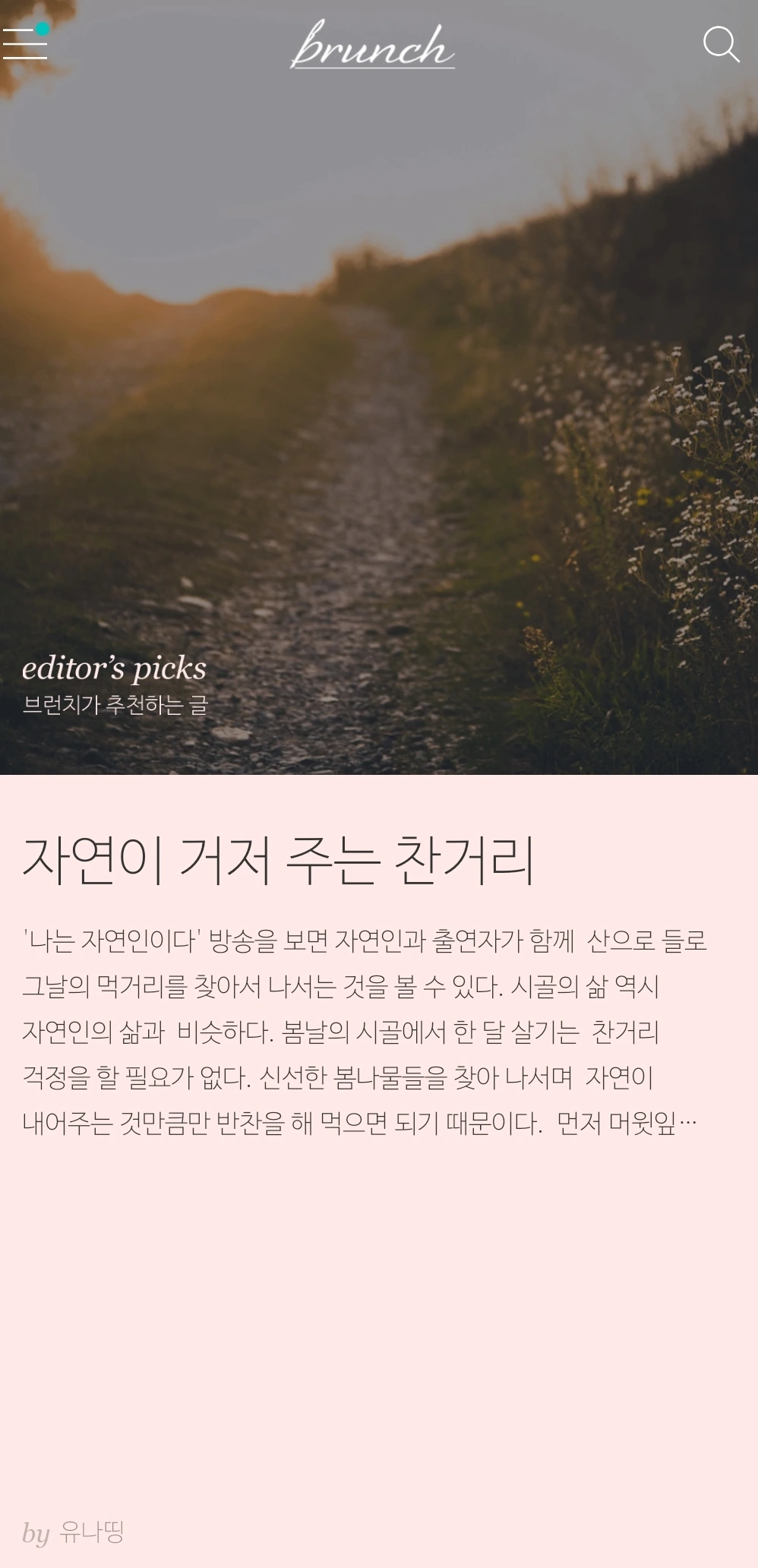 브런치에 합격하고 나서는 이것저것 쓰고 있기는 하지만 브런치에 쓰겠다고 했던 섬마을 이야기가 메인을 차지하고 있다. 그래서인지 섬마을 이야기는 언제나 다음이나 카카오 탭에 노출이 잘되고 있다. 가끔브런치가 추천하는 글에도 보인다. 덕분에 브런치에 글을 쓰는 재미가 있다.