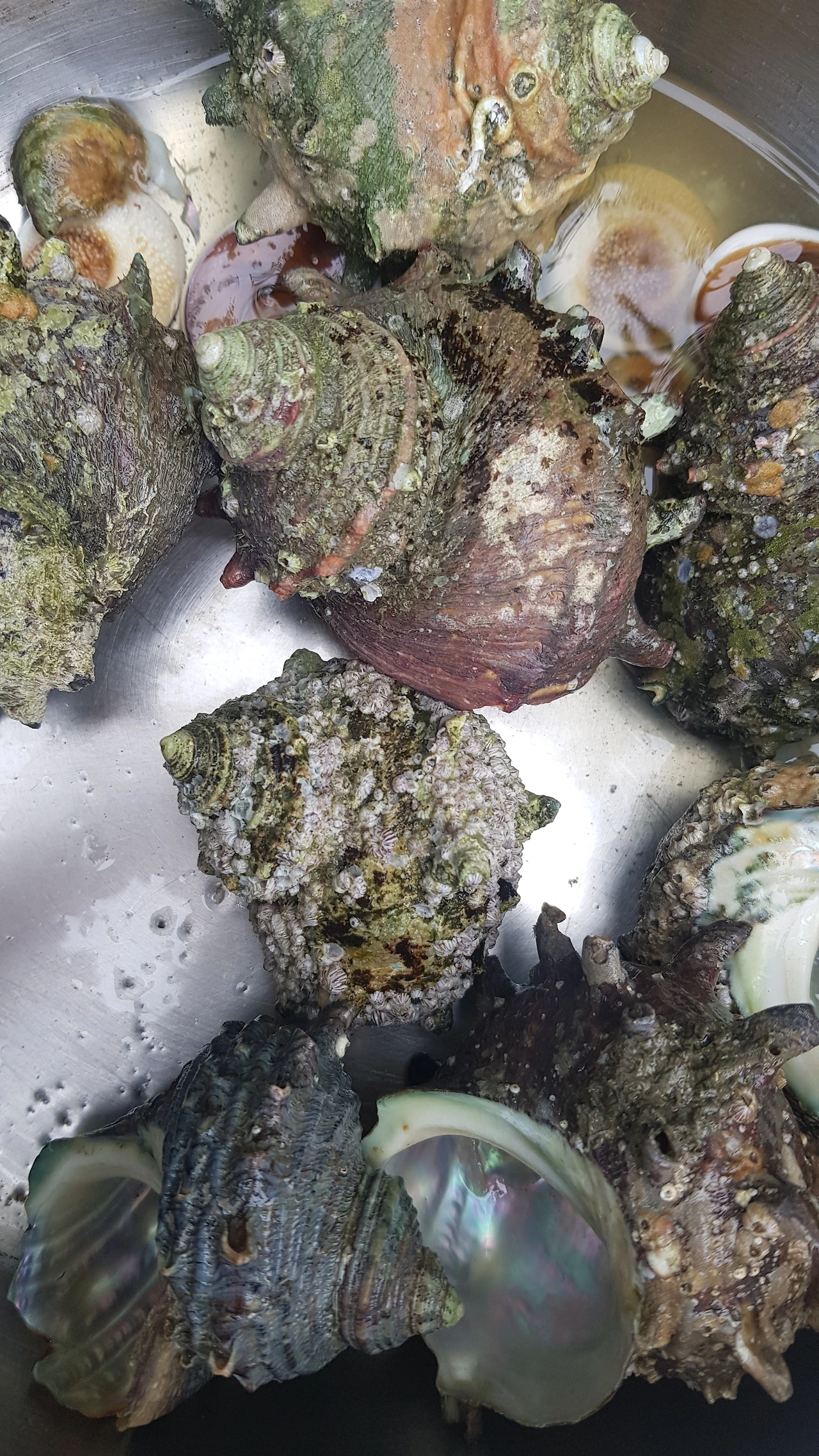 바위 위에서 조심조심 고동을 잡다가 그만 미끄러운 바위에 미끄덩 넘어지고 말았다. 다행히 엉덩이를 바위에 댔다. 뒷주머니에 핸드폰을 넣었으면 박사가 날뻔했다. 다리에 상처만 가득이다. 이제 고동 잡기 즐거움은 그만 집으로 돌아가야 할 시간이다.