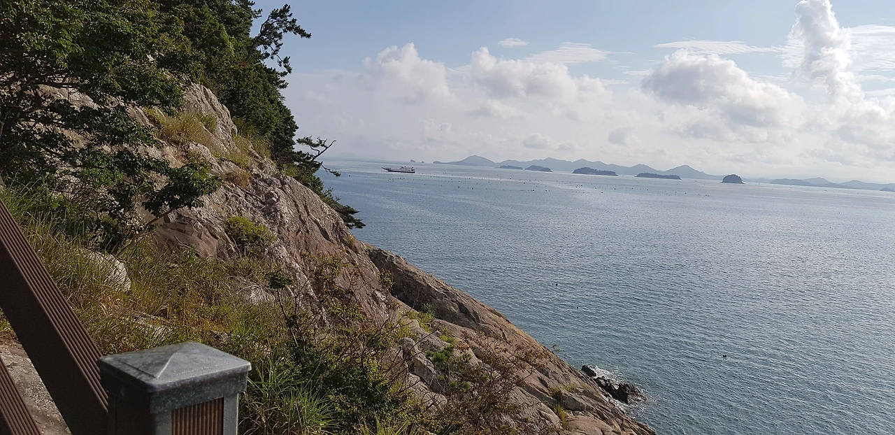 왕복 한 시간 거리를 걸어 동백나무의 기운을 받으며 파도를 벗 삼아 숲길 트래킹을 마쳤다. 무더운 땡볕더위가 내리쬐었지만 동백나무잎 초록의 엽록소가 다 받아 내서인지 더위라고는 느낄 수 없었다. 다소 짧은 감이 있지만 산 위로 올라가는 길이 완성된다면 더 높이 더 멀리 바다 위로 펼쳐진 섬들을 바라보며 트래킹을 즐길 수 있는 절호의 기회를 얻을 수 있을 것 같다.