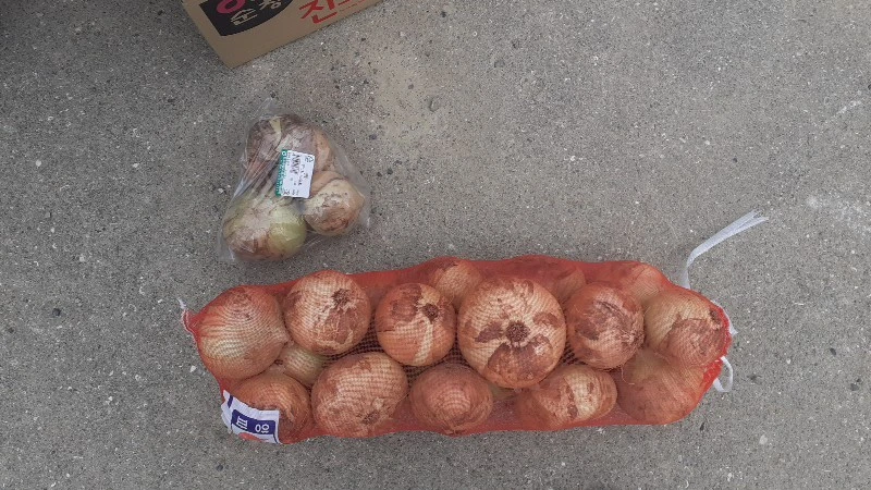 미루던 식자재를 사러 마트에 들렀다가 양파가 오랫동안 떨어졌는데 사지 않은 것을 생각하고 양파를 샀다. 3개에 2500원가량이나 했다. 돌아오는 길에 고금도 도로 큰길에 놓여있는 양파들을 발견했다. 얼마 전부터 고금도에서 양파를 수확하는 것을 보았는데 길거리에 놓고 팔 고 있었다. 지난번 이곳에서 생굴을 한 번 산 경험이 있어서 차를 주차했다. 바다의 물은 빠져 있고 하얀 강아지 백구가 양파를 지키고 있었다. 그러나 손님이 와도 짖거나 하지는 않고 그냥 물끄러미 지켜만 보고 있었다. "계세요" 하고 소리를 질렀더니 도로 건너편에서 아줌마가 나오셨다. 작고 귀여운 검둥이가 아줌마가 나오는 것을 보고 반갑게 꼬리를 치고 따라다니는 모습이 정겨웠다. 양파 한 망에 만 원을 주고 구매하고 나니 양파가 너무 많아졌다.