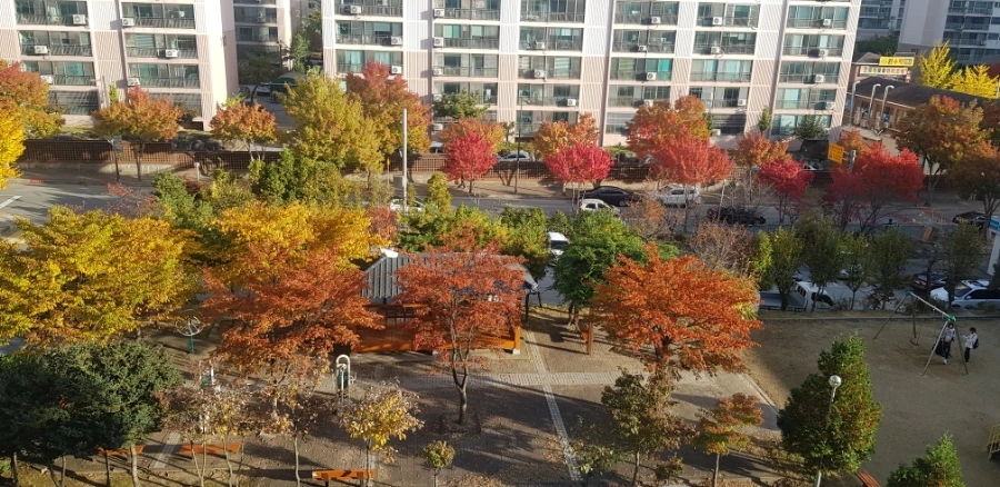 창문 밖으로 보이는 가을 풍경 나무들이 서서히 가을빛으로 물들어간다. 아침 공기는 서늘하고 햇살은 정겹게 느껴지는 날 가벼운 발걸음으로 산책을 나섰다. 스며들듯 가을 색들이 조화롭게 물들어간다. 마음까지 가을빛으로 물들어간다.