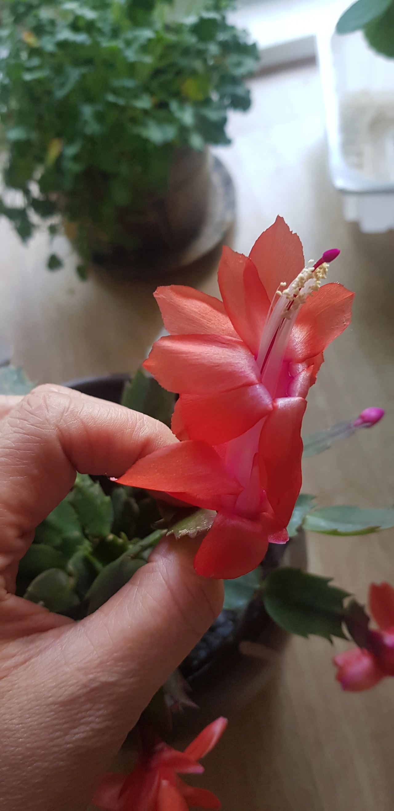 게발선인장을 키우기 시작하면서 그저 다육이 선인장의 한 종류거니 하며 많은 관심을 주지 않았다. 그러던 어느 날 언니가 집에 다녀가며 꽃을 예쁘게 피운다는 이야기를 전해주었다. 그러나 그해에 베란다에 놓인 게발선인장은 꽃을 피우지 않았다.