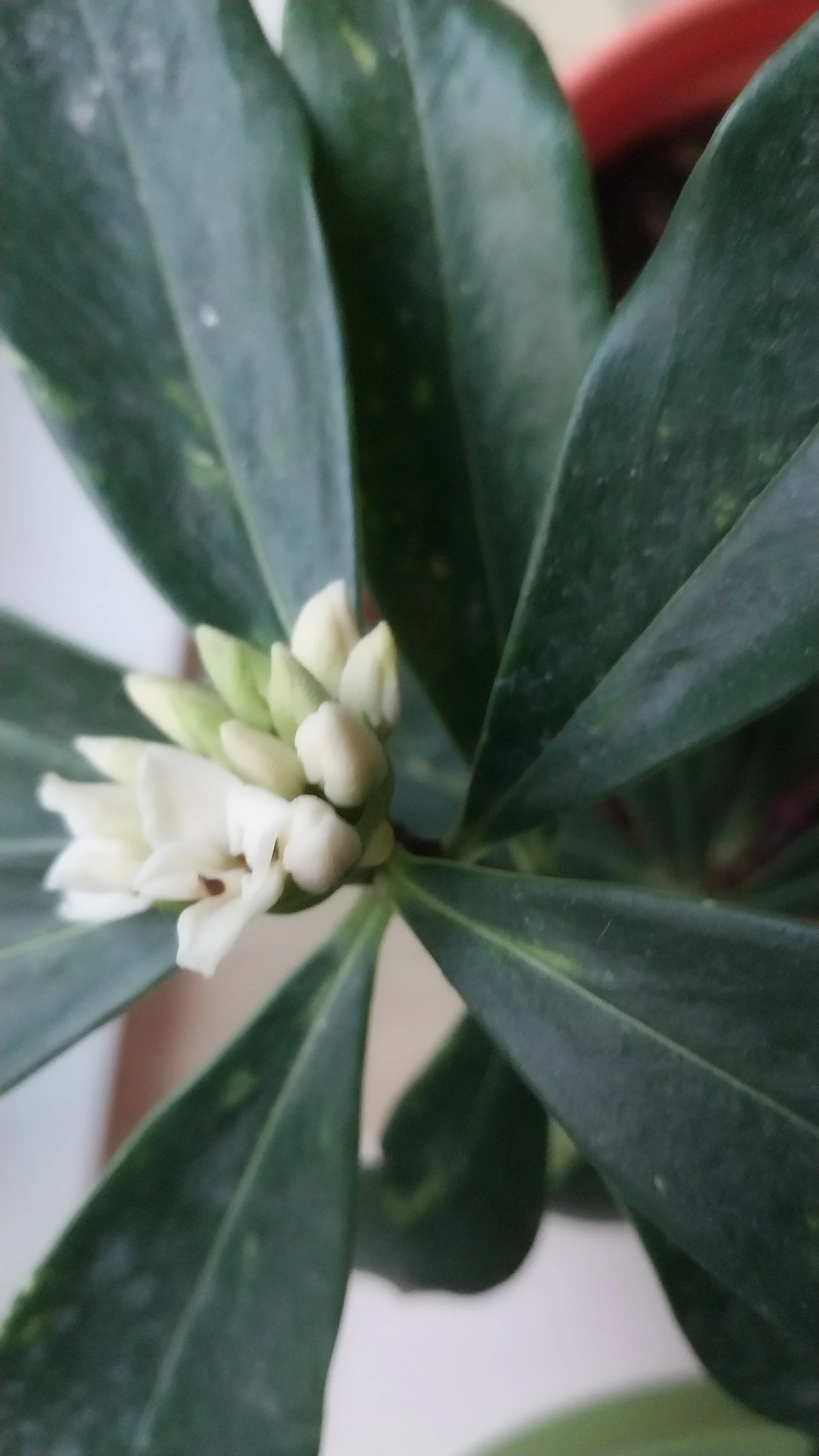 지난해 10월 한 달 반을 집을 비운 시계 집사의 부재로 죽어버린 식물들이 많았는데요. 천리향은 화분을 저면 관수로 분갈이를 해주어서인지 잘 자라고 있었습니다. 그리고 새로운 생명의 탄생을 알리듯 연한 몽우리가 맺어있었습니다.