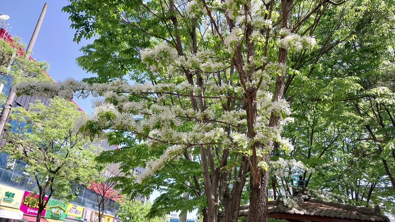 산책을 하다 나무 아래서 고개를 드니 처음 보는 하얀 꽃이 나무 위에 소복이 쌓여있었다. 무슨 꽃인지 무슨 나무인지? 언제부터 이 자리에 있었는지 알 수 없었던 처음 경험한 남도의 자연이었다. 새로움으로 다가왔던 남도의 봄여름 가을 겨울 만나보지 못했던 식물들과 꽃들 그리고 나무들을 만나게 되었다. 바로 이팝나무가 한창인 가로수를 어느 해에는 6월경에 보기도 하고 5월에 보기도 했다. 그런데 벌써 4월에 이팝나무가 피었다. 이제 곧 사라질 것처럼 하얀 눈꽃을 피워낸 나무도 있다.