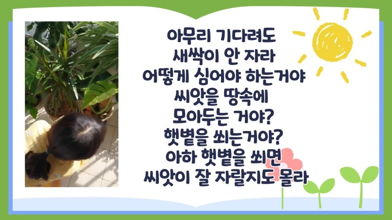 아하 햇볕을 쐬면 씨앗을 잘 자랄지도 몰라
