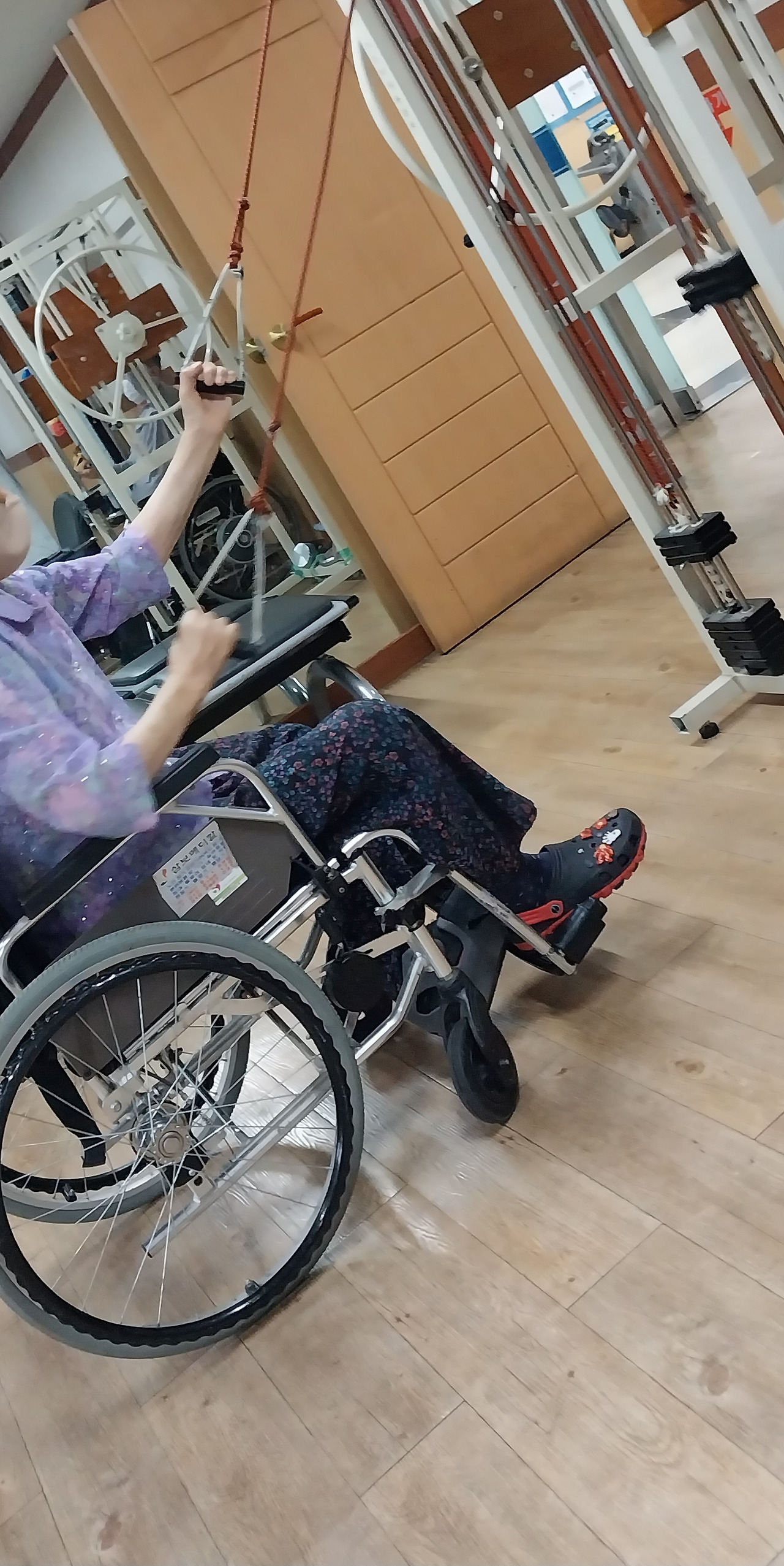 시계를 보니 운동치료시간이 얼마 남지 않았다. 엄마에게 가봐야 할시간 되었다. 벌써 5년에서 10년 이상 아픈 가족을 돌보며 재활치료를 계속 시키고 있는 보호자들의 수다는 끝이 나고 있었다. 흰머리 언니는 청년이 되었지만 아직도 물가에 내놓은듯한 철없이 어린 아들에게로 , 커트머리 동생은 어린아이가 되어버린 편마비 남편에게로, 앞니나 온 이모는 전신마비가 되어버린 남편에게로 가서 운동치료가 끝나면 다른 치료실로 옮겨주어야만 하기 때문이다.