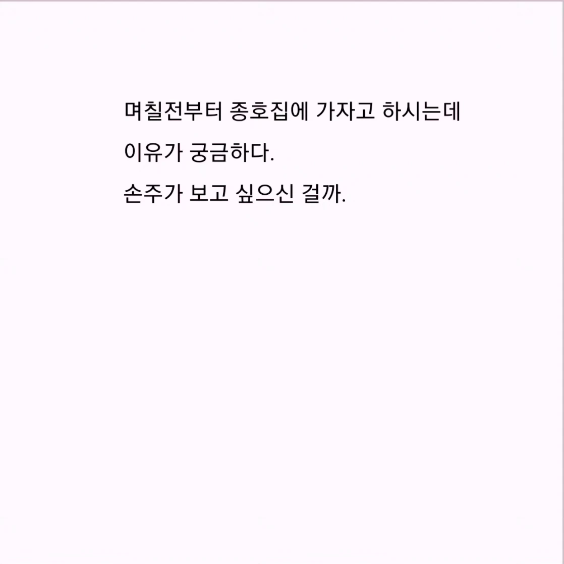 뜬금없이 손주집에 가보자고 하시는 엄마다. 명절이 다가와서 인지, 증손녀가 보고 싶어서 라고 생각했다. 그러데 엄마의 대답은 의외였다.