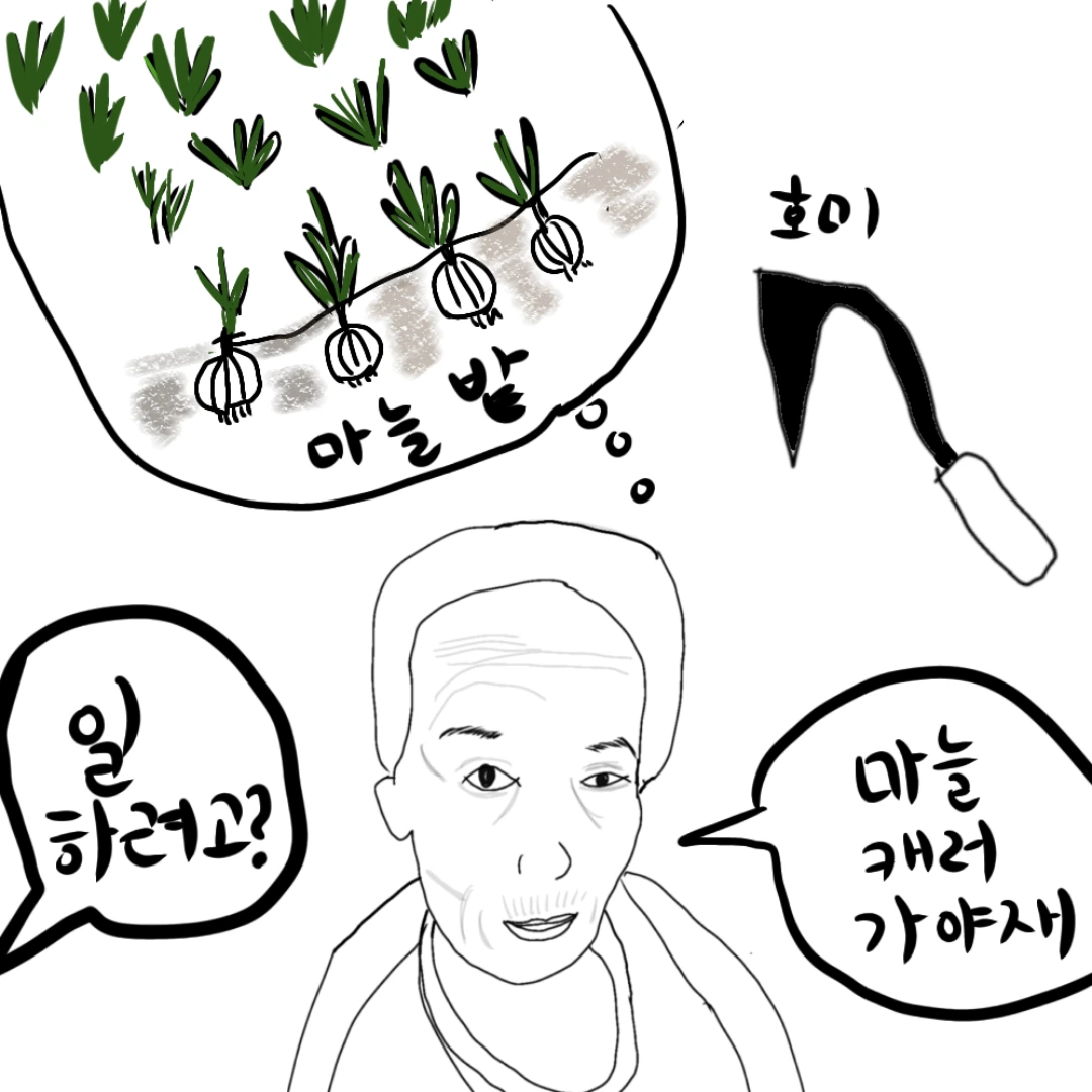 엄마에게 통증약은 노동약이었다. 일을하면 아프다고 하자 바로 마늘캐러 가는 것을 포기했던 엄마지만 어쩌면 꿈속에서 호미로 마늘을 캐고 있을지도 모른다. 마늘캐는 철도 아니지만 엄마는 시골에서 지내실때 이렇게 볕좋은날 마늘을 캐러 가셨겠지. 그 마늘을 까서 자식들에게 보낼 맛있는 음식을 만들어 주셨다.