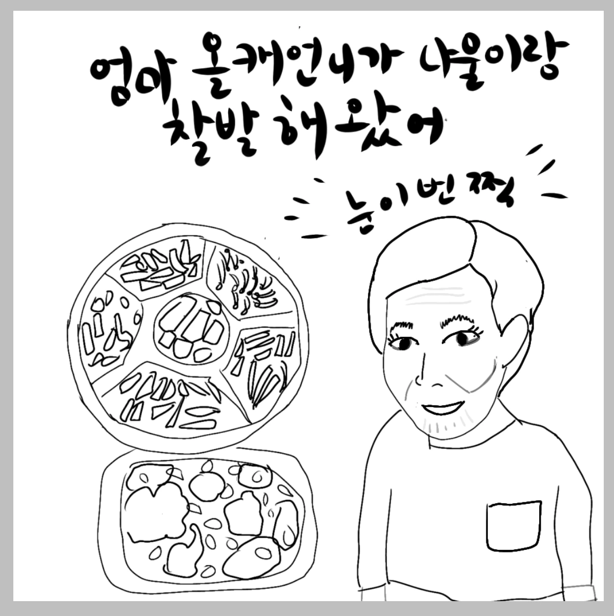 "엄마 올케언니가 찰밥이랑 나물해왔어