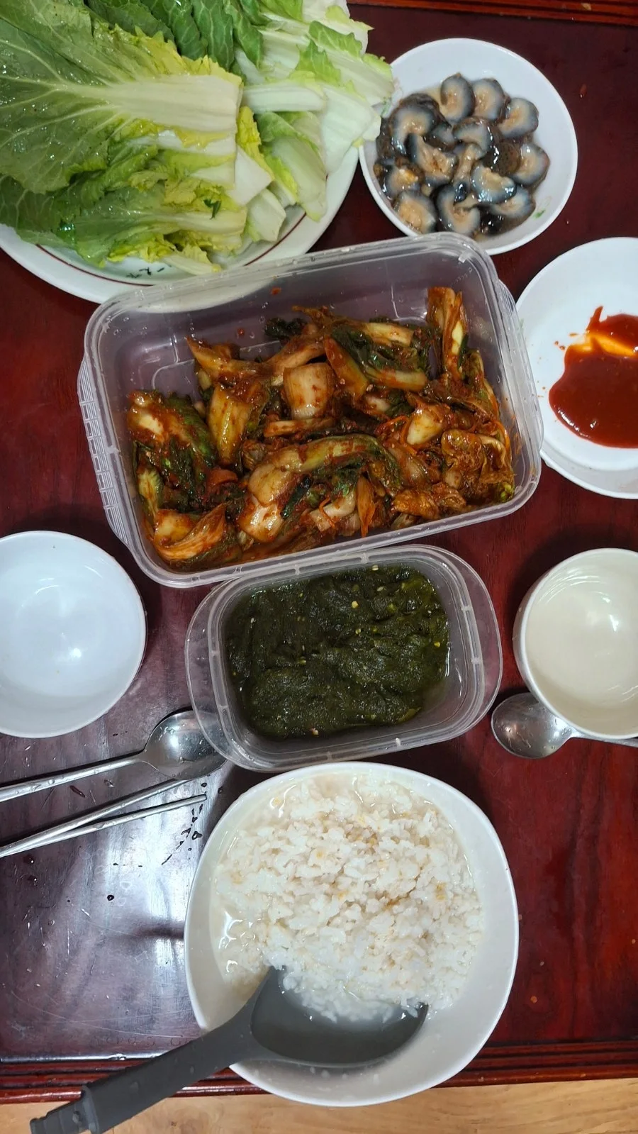 친구들을 삼겹살 파티에 초대했다. 친구들과 봄동을 씻어 식탁에 놓고 삼겹살을 구웠다. 여기에 매생이를 곁들이고, 지난가을 담가둔 고추장아찌를 더하니 진수성찬이 따로 없었다. "이게 바로 진짜 영양식이지!" 하며 친구들과 봄동 위에 매생이와 고추장아찌까지 얹어 맛을 음미했다. 오랜만에 만난 친구들과 식사를 나누는 귀한 시간이었다.
