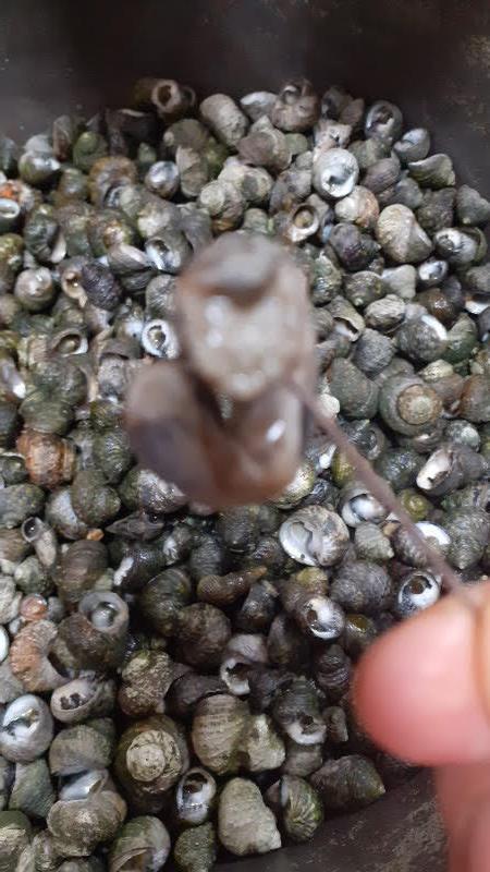 고동을 잡은 날 밤 고동을 바로 까야만 하는데 고동을 잡은 만큼 고동 까는 시간은 배가 넘게 걸린다. 여기서부터는 노동의 시작이다. 고동을 잘 까기 위해서는 고동을 잘 삶아야 한다. 고동을 잘 씻으면 좋겠지만 그러다 고동이 쏙 들어가 버리면 고동 까기 시 낭패를 볼 수 있으니 고동을 살살 달래듯 씻어낸다. 그리고 바로 솥에 물을 붓고 고동을 삶기 시작한다.