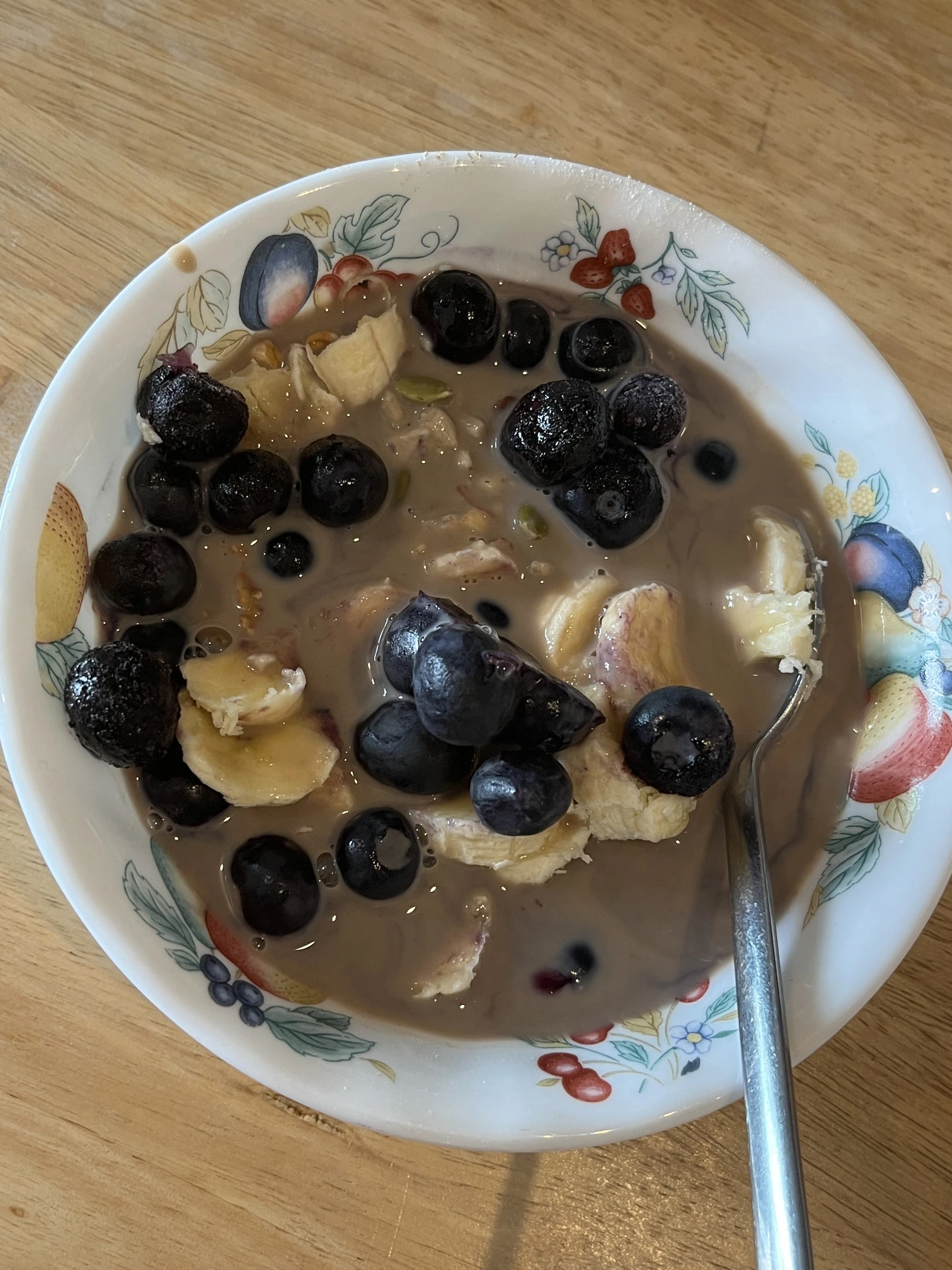 언젠가 엄마가 준 오트밀로 식사를 준비하려다 거하게 망한 후, 오트밀을 시도하려는 마음은 저 멀리 사라졌었다. 그런데 이번 생일 다음날인 아침에 오트밀 하는 법을 배웠다. 귀여운 그가 바나나와 냉동 블루베리, 견과믹스, 오트밀을 챙겨 들고 우리 집에 와서는 그 재료를 우리 집 냉장고에 넣어뒀다는 것도 난 모르고 시간을 보냈었다.