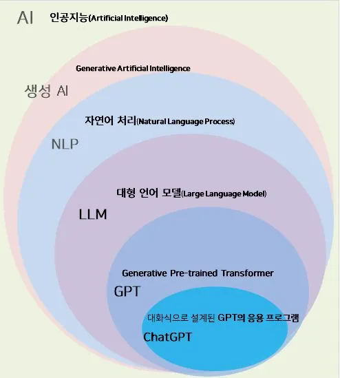 우선 사용 용어에 익숙하지도 않고, 구분이 되지 않을뿐더러 어려워서 정리해 보기 시작했다. 가장 구분하기 어려웠던 것이 인공지능(AI)과 생성형 AI의 차이, NLP(자연어처리)와 LLM(대형 언어모델), GPT(OpenAI의 언어모델)와 ChatGPT(OpenAI의 챗봇) 등이었다. 기술로 들어가면 CNN, RNN, GAN 등에 대한 이해는 더 어려워졌다.