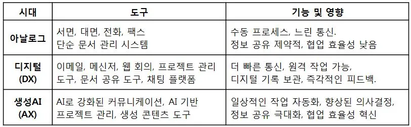 AX시대인 지금은 협업 툴이 보다 지능화되고 고도화되어 생산성은 물론 개인의 역량 강화로 이어지고 있다.