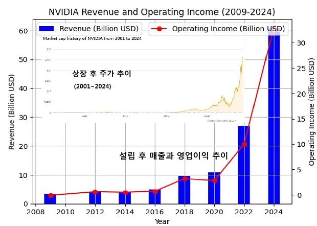 1993년 설립 이후 NVIDIA의 매출과 영업이익 추이