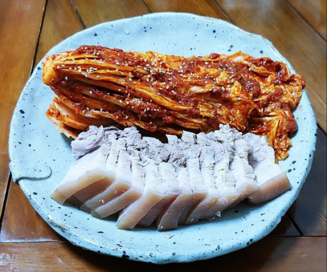 막 삶아낸 따끈한 고기 한 점에