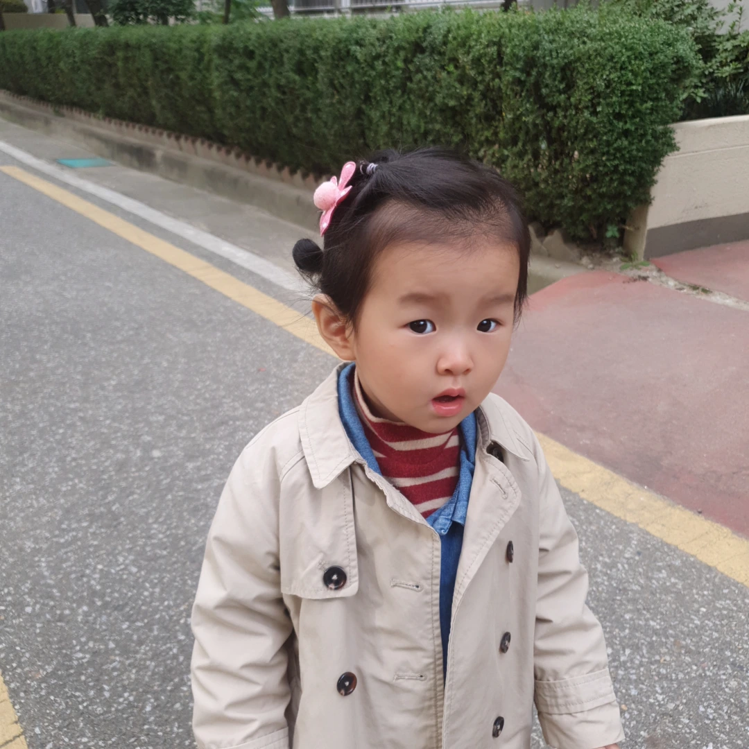 어린이집 등원을 위해 집 밖을 나섰습니다.